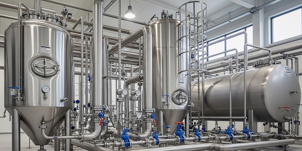 Somos especialistas en el diseño, fabricación y montaje de tanques de almacenamiento y proceso. Construimos equipos a medida en acero inoxidable y al carbono, tanto atmosféricos como de presión, para satisfacer las necesidades específicas de su operación. Nuestro servicio se complementa con la instalación experta de redes de tuberías para el transporte seguro y eficiente de todo tipo de fluidos industriales y de servicio, garantizando la máxima integridad, funcionalidad y durabilidad de las instalaciones de su planta de producción.